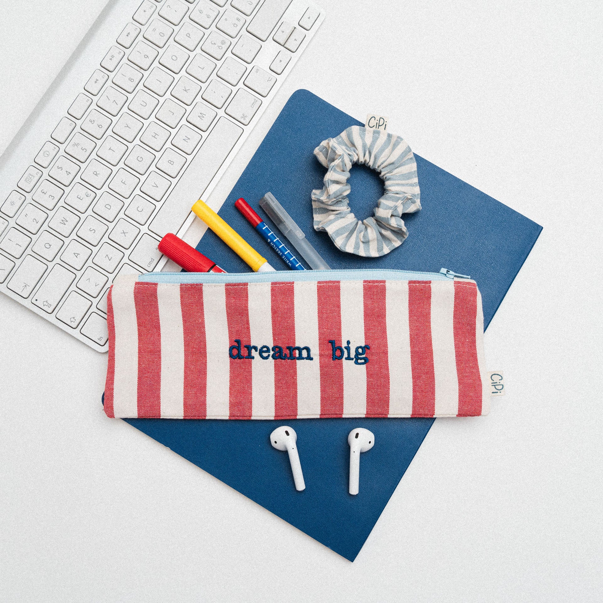 porta un po’ di allegria nella tua giornata con queto astuccio in cotone ricamato! realizzato a mano con cura e attenzione, è l’accessorio ideale per chi ama organizzarsi con stile e un pizzico di ironia. i ricami a macchina, con frasi simpatiche e colorate, lo rendono unico e perfetto per esprimere la tua personalità.