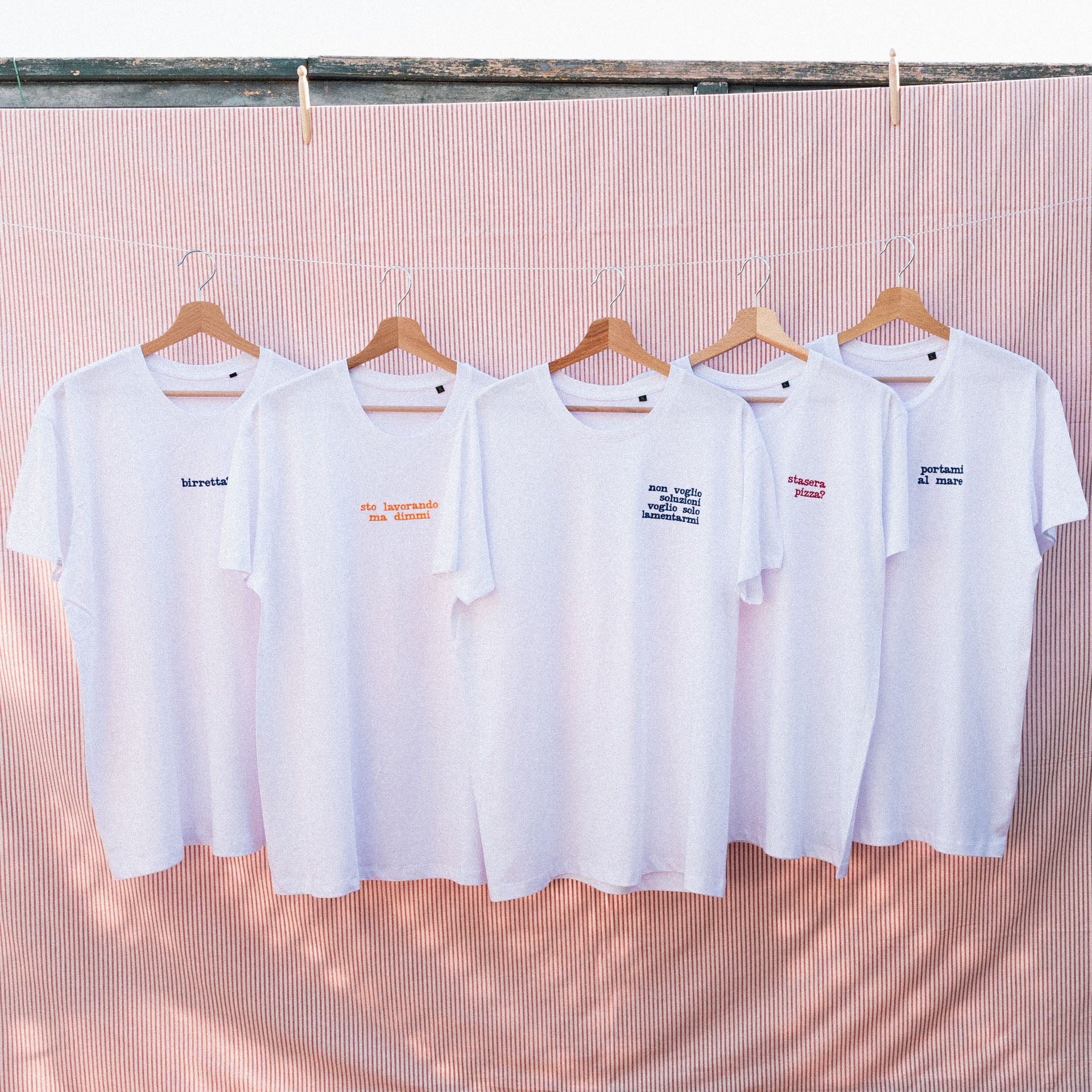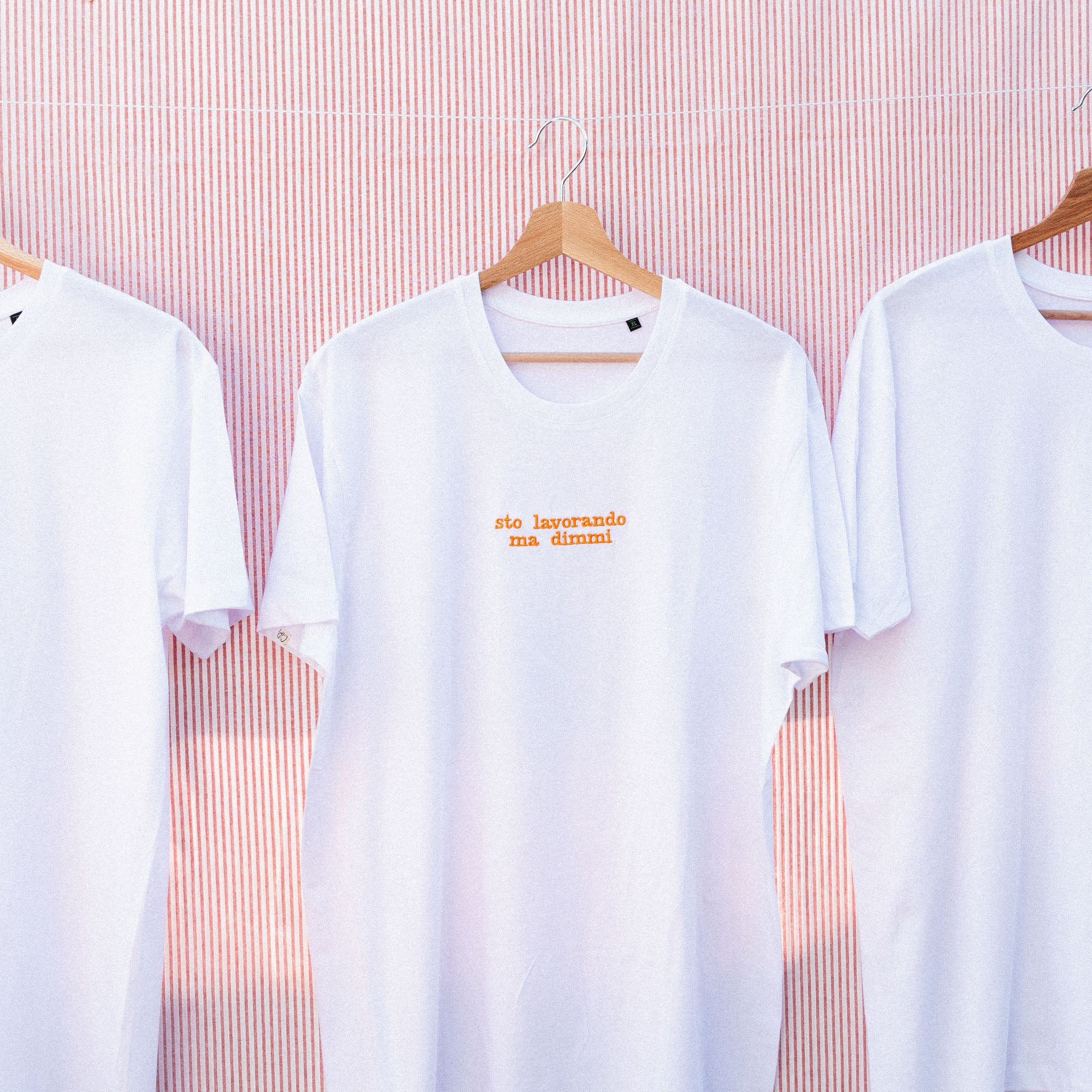 le t-shirt ricamate unisex sono facili da mantenere. puoi lavarle in lavatrice a bassa temperatura con un programma delicato. asciugale all’aria per mantenere il cotone morbido e il ricamo sempre intatto.