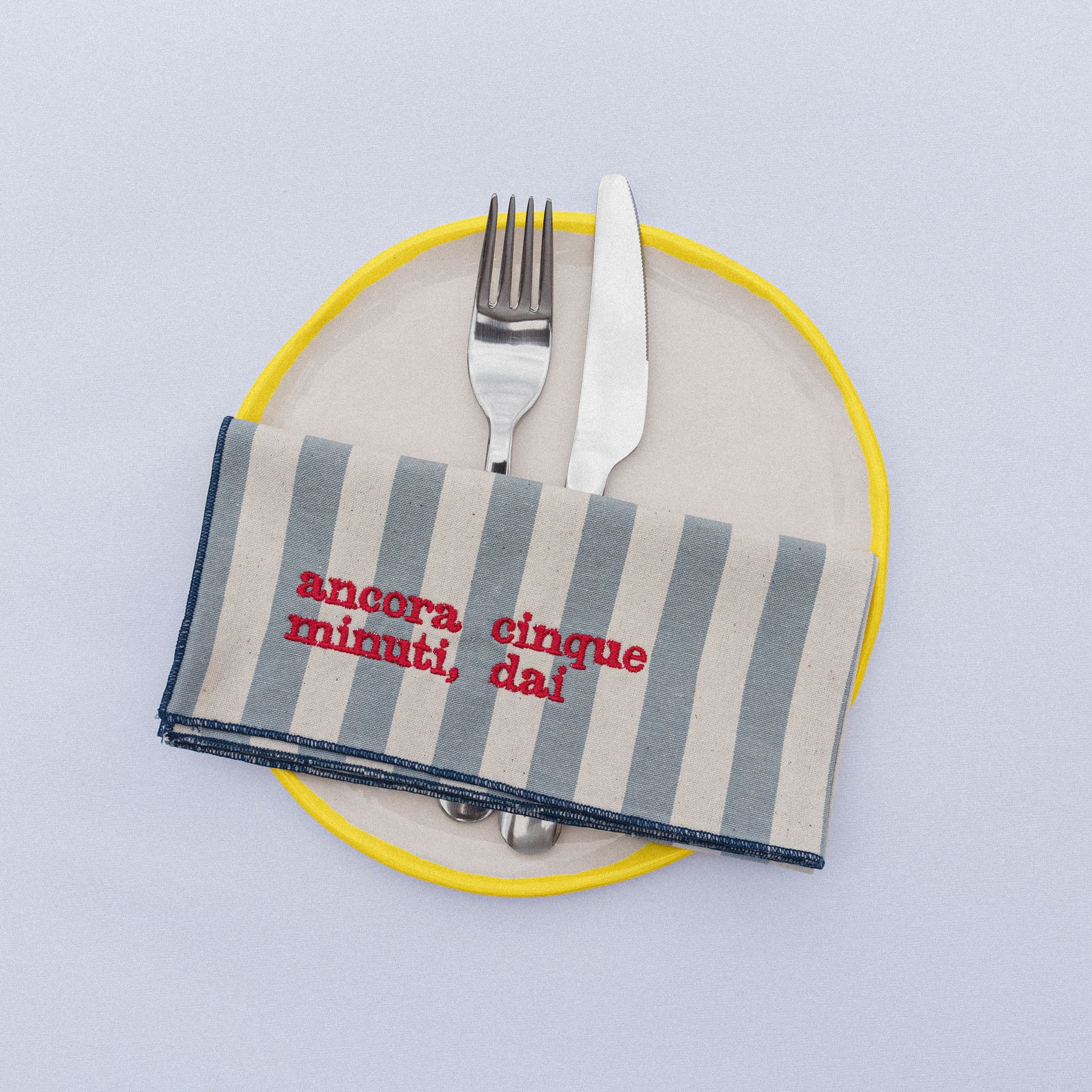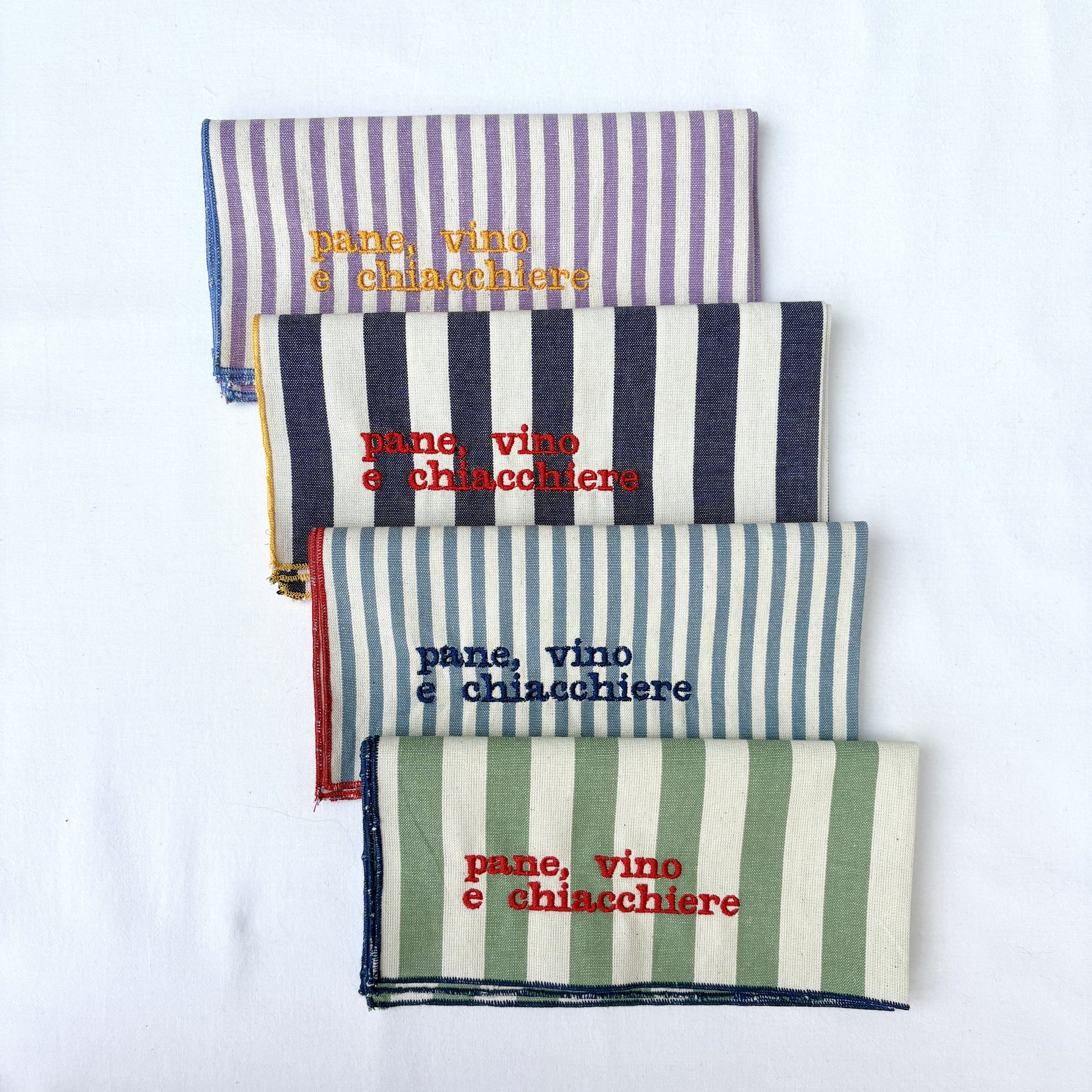 rendi ogni pasto più divertente con i nostri tovaglioli in cotone ricamato, colorati, pratici e sempre pronti a portare un po’ di buonumore!