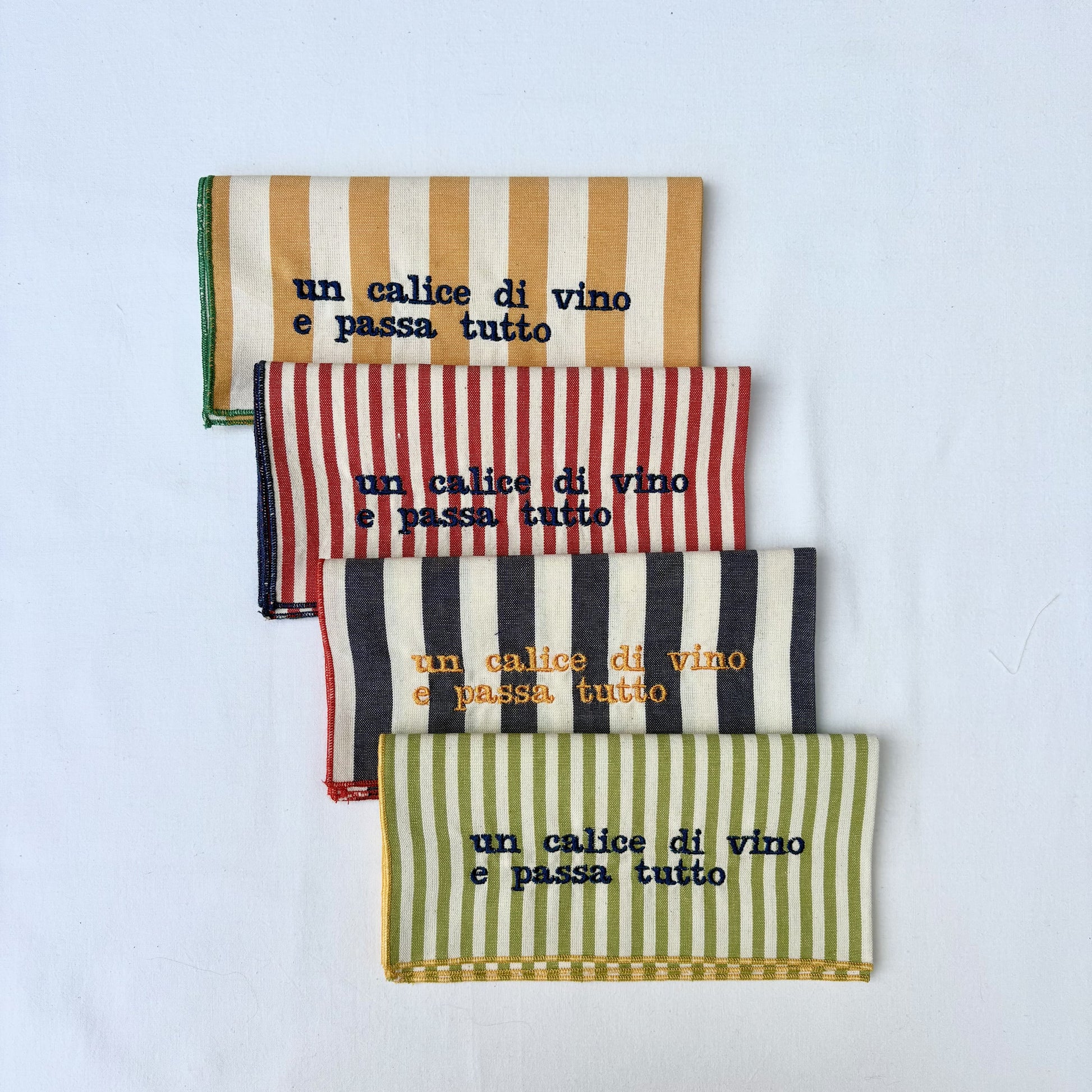 rendi ogni pasto più divertente con i nostri tovaglioli in cotone ricamato, colorati, pratici e sempre pronti a portare un po’ di buonumore!