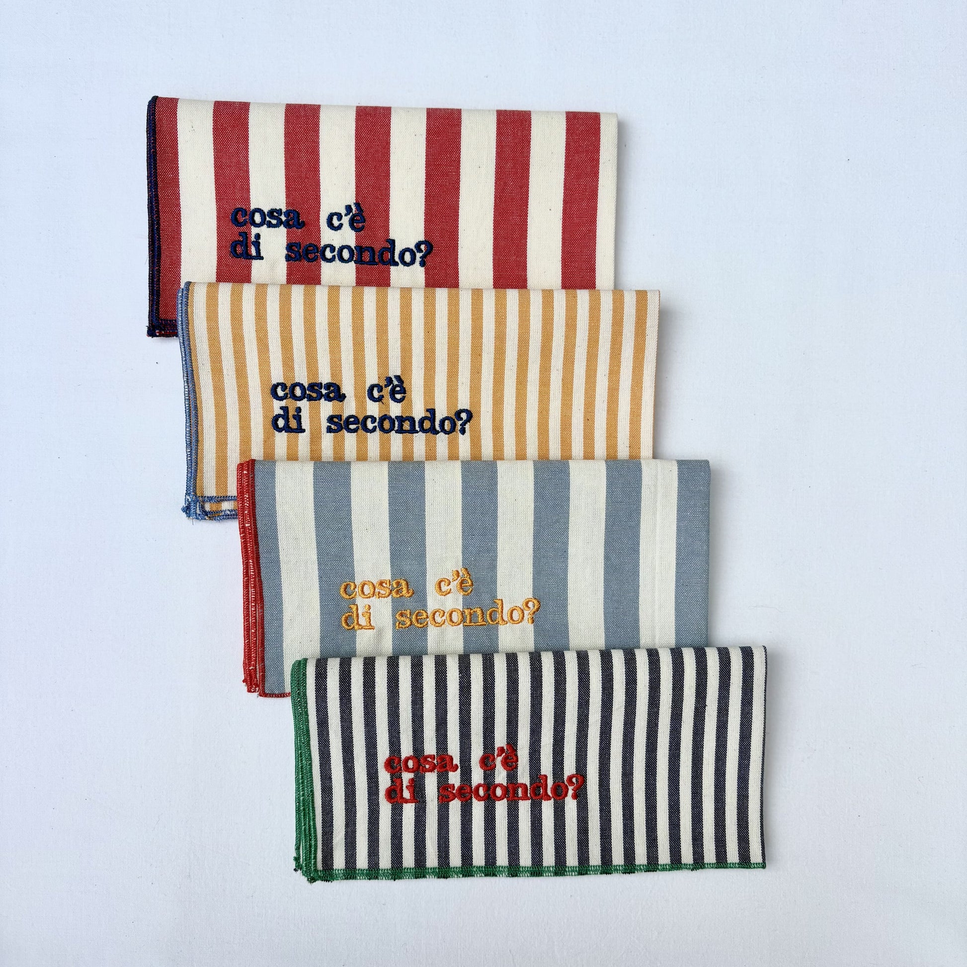 rendi ogni pasto più divertente con i nostri tovaglioli in cotone ricamato, colorati, pratici e sempre pronti a portare un po’ di buonumore!