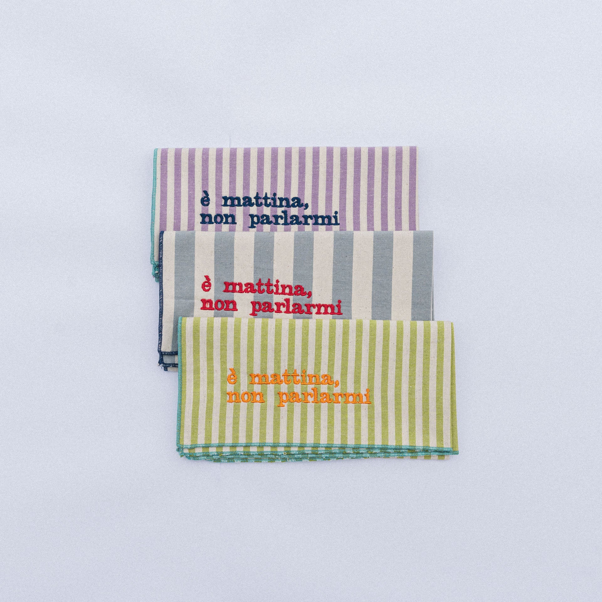 rendi ogni pasto più divertente con i nostri tovaglioli in cotone ricamato, colorati, pratici e sempre pronti a portare un po’ di buonumore!