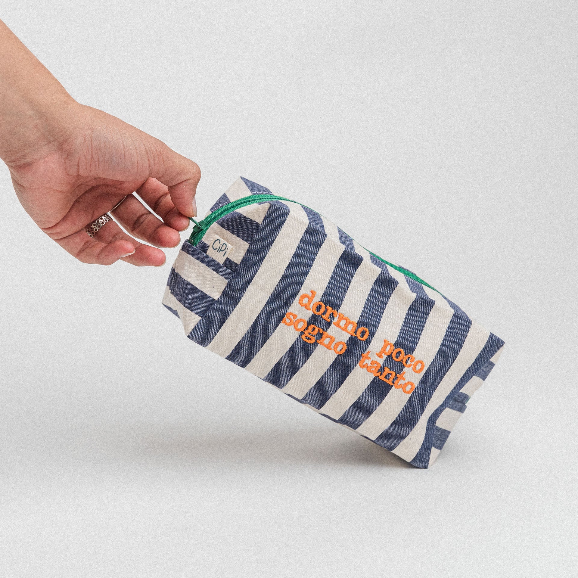 la tua trousse può essere lavato comodamente in lavatrice! basta scegliere un programma delicato e utilizzare acqua fredda per preservare il ricamo e la qualità del tessuto
