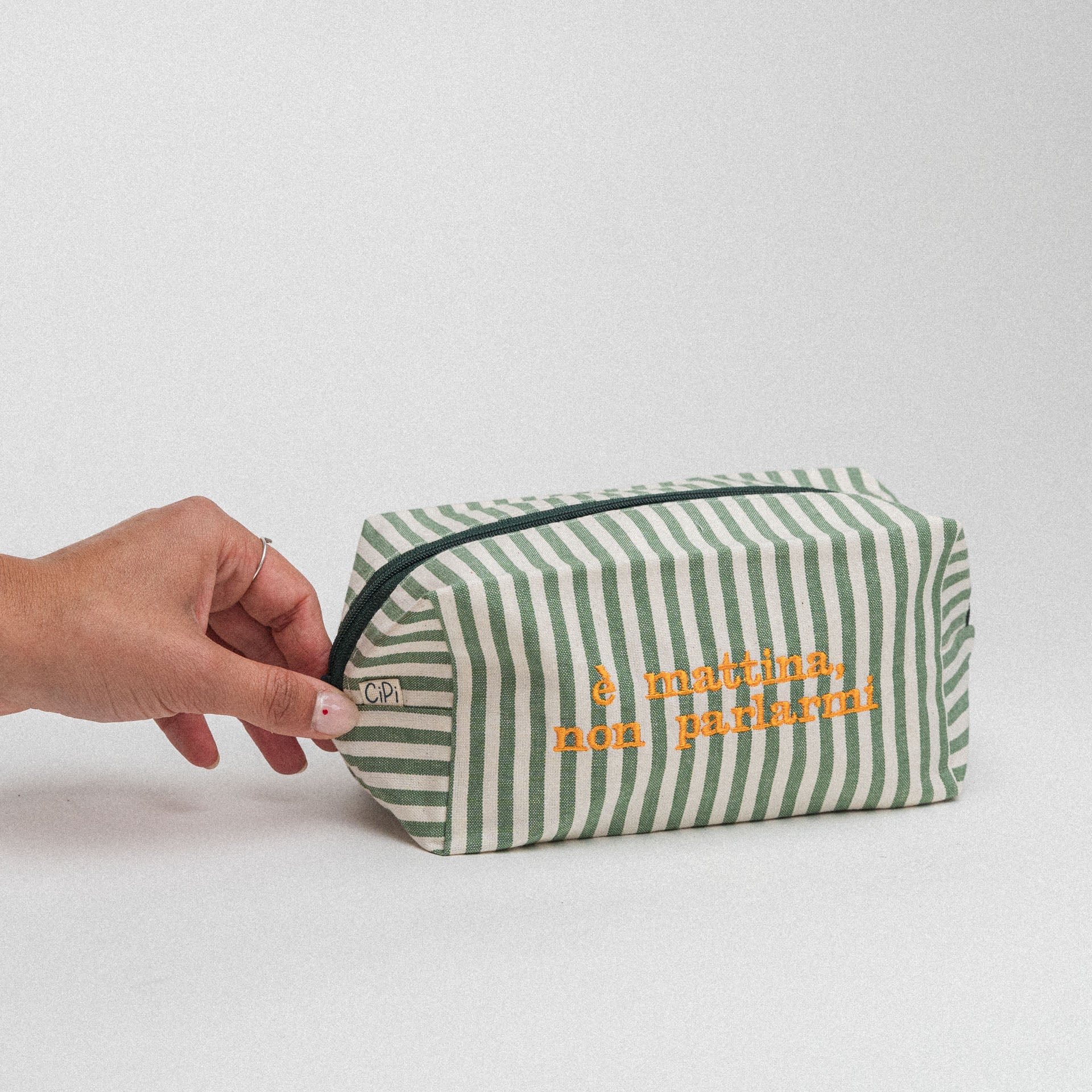 la tua trousse può essere lavato comodamente in lavatrice! basta scegliere un programma delicato e utilizzare acqua fredda per preservare il ricamo e la qualità del tessuto