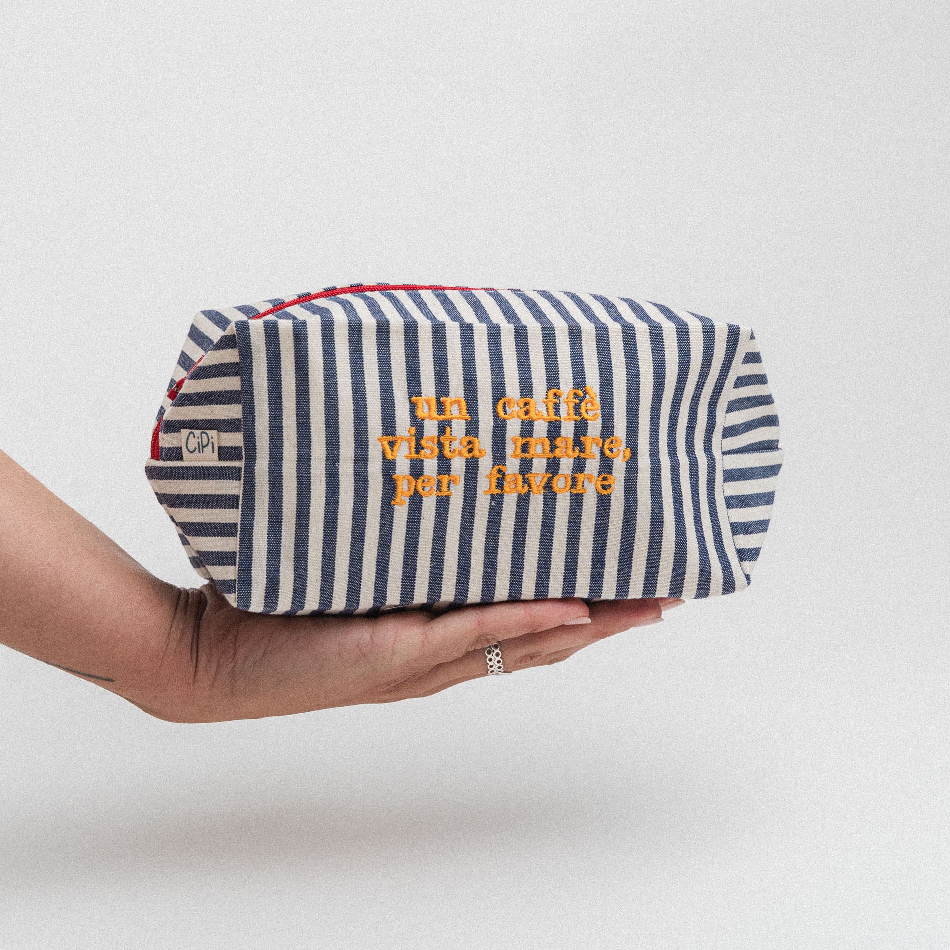 la tua trousse può essere lavato comodamente in lavatrice! basta scegliere un programma delicato e utilizzare acqua fredda per preservare il ricamo e la qualità del tessuto